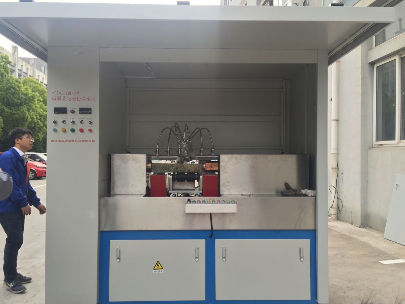 齒圈、環(huán)型件微機(jī)控制熒光磁粉探傷機(jī),托架旋轉(zhuǎn)探傷,提高效率無漏檢無盲區(qū)